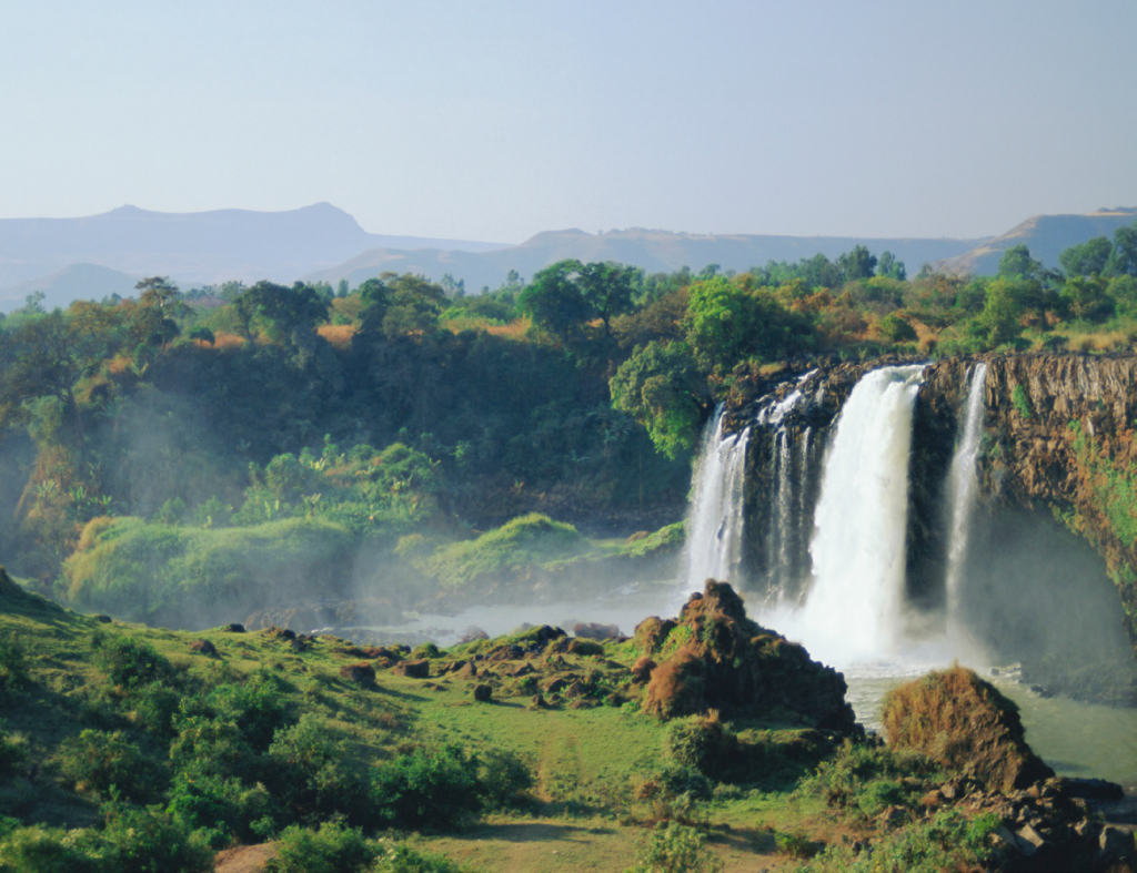 THE BLUE NILE FALLS The Nile River is the longest in Africa and its two tributaries are the White Nile and the Blue Nile. The Blue Nile begins in Ethiopia and along its course you’ll find the Blue Nile Falls– a spot to rival Niagara. About 90 minutes from Bahir Dar the scenery here is truly breath-taking. Locally known as Tis Abbay, or ‘great smoke,’ the falls are about 45 metres high during the rainy season. Just downstream from the falls you’ll find Ethiopia’s first stone bridge, built in the 17th century.
