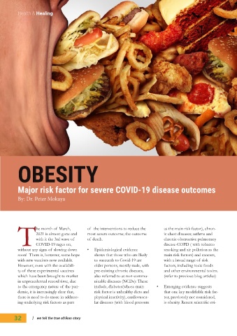 demic, it is increasingly clear that, risk factor is unhealthy diets and that one key modifiable risk fac-