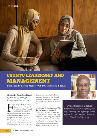 to embrace Ubuntu-based Leadership & Management: Why Independent Researcher on Afrikan philos-