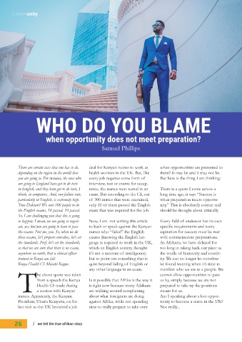 President, Uhuru Kenyatta, on his against Afrika, while not spending tunity to become a nurse in the UK?