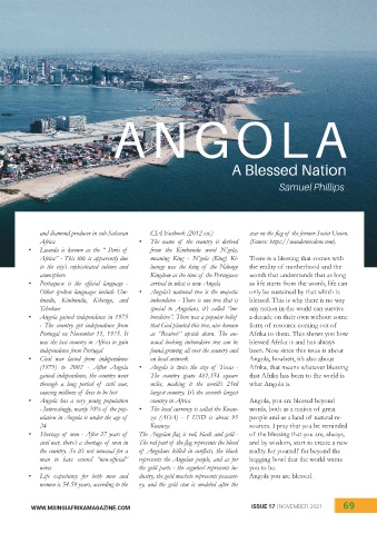 Other spoken languages include Um- • Angola’s national tree is the majestic only be sustained by that which is