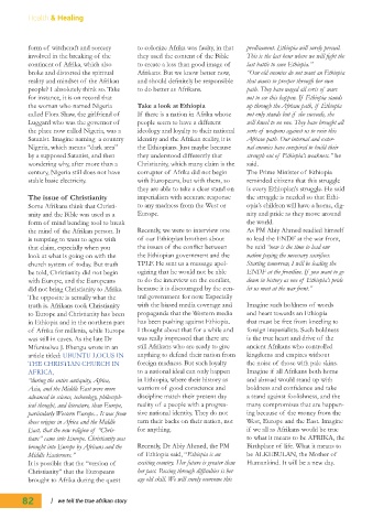 Some Afrikans think that Christi- to any madness from the West or opia’s children will have a home, dig-
