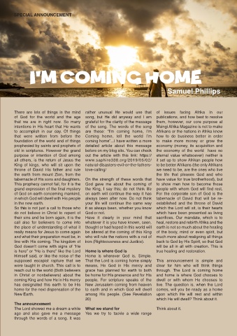 to accomplish in our day. Of things are these: “I’m coming home, I’m Afrikans or the nations in Afrika know