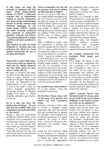 myself as a Kingdom ambassador manager for the Hi Life channel on and influence Africa’s youthful