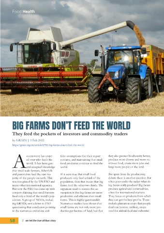 a report claiming that small farmers sumption is that big farms are more often for international markets.