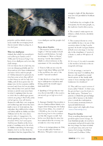 themselves with their own weapons 5. Amongst Zambia’s big wonders is In rural areas, monetary dowry is