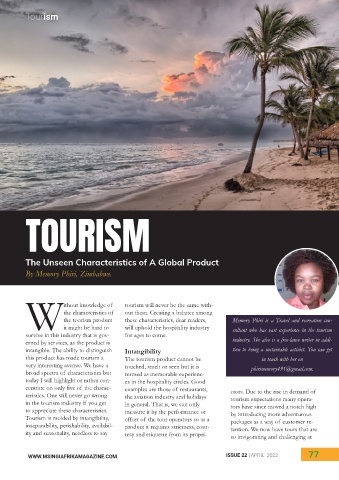 the tourism product these characteristics, dear readers, Memory Phiri is a Travel and recreation con-