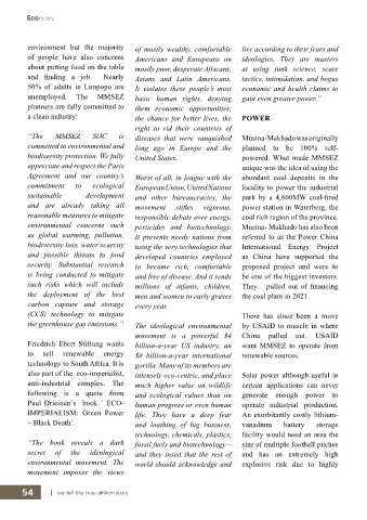 environmental concerns such pesticides and biotechnology. Musina- Makhado has also been