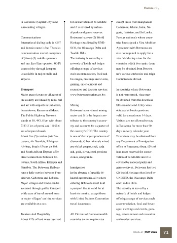 cistown, Gaborone and Lobatse. lateral agreements, all visitors UNESCO, the Okavango Delta