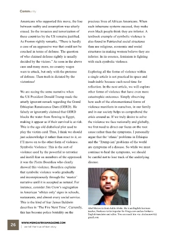 describes in ‘The Fire Next Time’. Currently, Abel Merawi is from Addis Ababa. He is an English literature