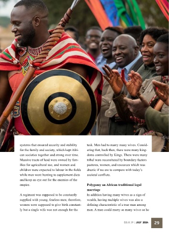 systems that ensured security and stability task. Men had to marry many wives. Consid-
