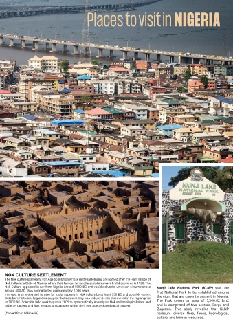 Nok Culture appeared in northern Nigeria around 1500 BC and vanished under unknown circumstances Kainji Lake National Park (KLNP) was the