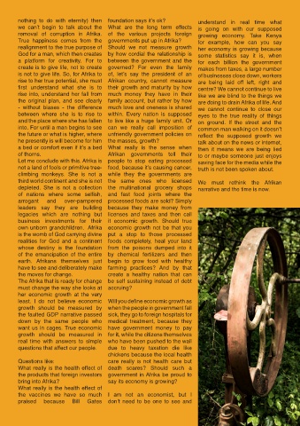 Let me conclude with this. Afrika is people to stop eating processed saving face for the media while the