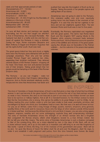is that of Amanirenas, the one-eyed Kandake. Her Kush and the kingdom NOT paying tribute to the
