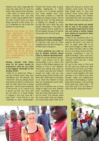 Brigitte has come up with life of integrity, because it’s hard to you are doing in Afrika maybe