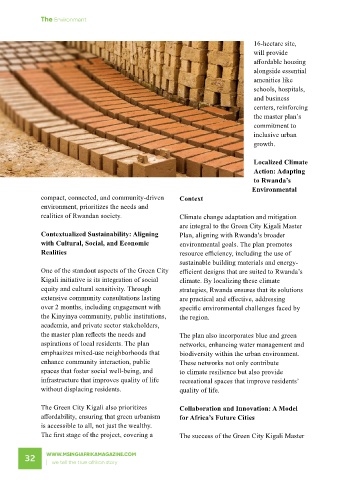 The first stage of the project, covering a The success of the Green City Kigali Master