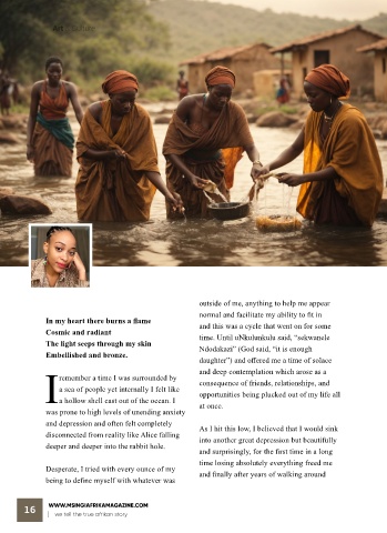 The light seeps through my skin Ndodakazi” (God said, “it is enough