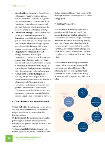 • Regenerative Practices: Beyond urbanization, micro communities could be