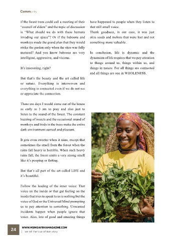 invading our space”? Or if the baboons and okra seeds and melons that were lost and not
