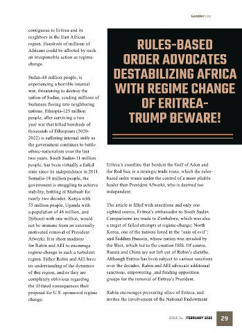 proposal for U.S. sponsored regime Rubin encourages pressuring allies of Eritrea, and