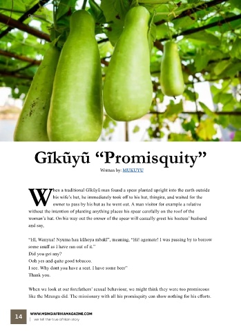 hen a traditional Gĩkũyũ man found a spear planted upright into the earth outside