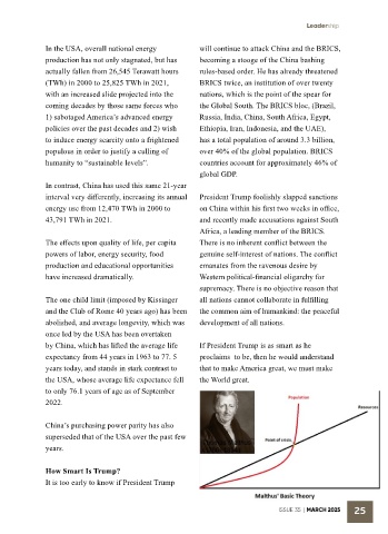 In the USA, overall national energy will continue to attack China and the BRICS,