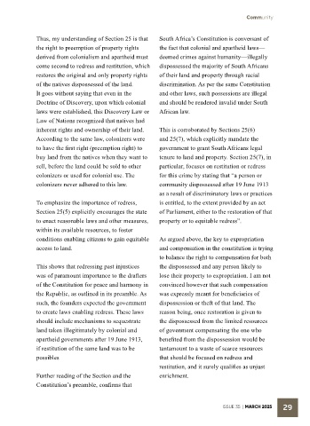Thus, my understanding of Section 25 is that South Africa’s Constitution is conversant of