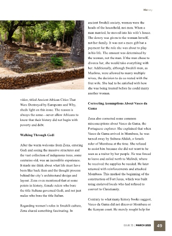 Regarding women’s roles in Swahili culture, Vasco da Gama did not discover Mombasa or