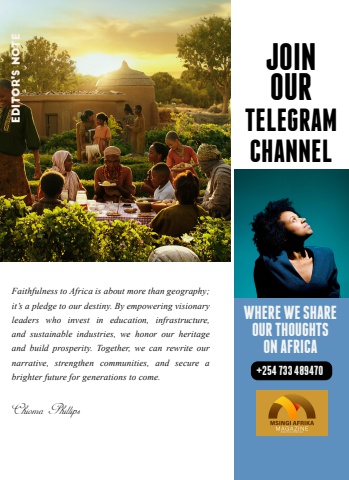 Faithfulness to Africa is about more than geography; it%u2019s a pledge to our destiny. By empowering visionary leaders who invest in education, infrastructure, and sustainable industries, we honor our heritage and build prosperity. Together, we can rewrite our narrative, strengthen communities, and secure a brighter future for generations to come.Chioma Phillips EDITOR's noteJOINOUR TELEGRAMCHANNELWHERE WE SHAREOUR THOUGHTSON AFRICA+254 733 489470