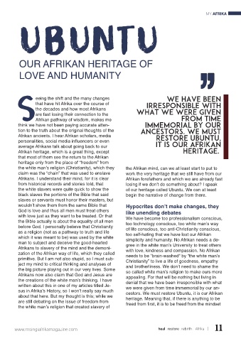 www.msingiafrikamagazine.com heal . restore . rebirth . Afrika | 11