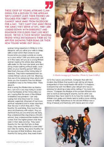 cestral Afrikan culture until now. Meaning A Himba teenage girl, Namibia. (Photo by Joan Goldby)