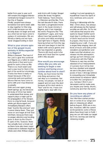 as a choir but we have come to Experience" Lagos, and many wants to impact his/her world