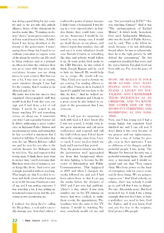 nors’ shoes,” in my press conference for me. Sometimes I would be fol- God used Ambassador Muthaura,
