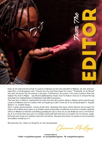 Even as we welcome the arrival of Lazarus Chakwera as the new president of Malawi, we also acknowl- EDITOR